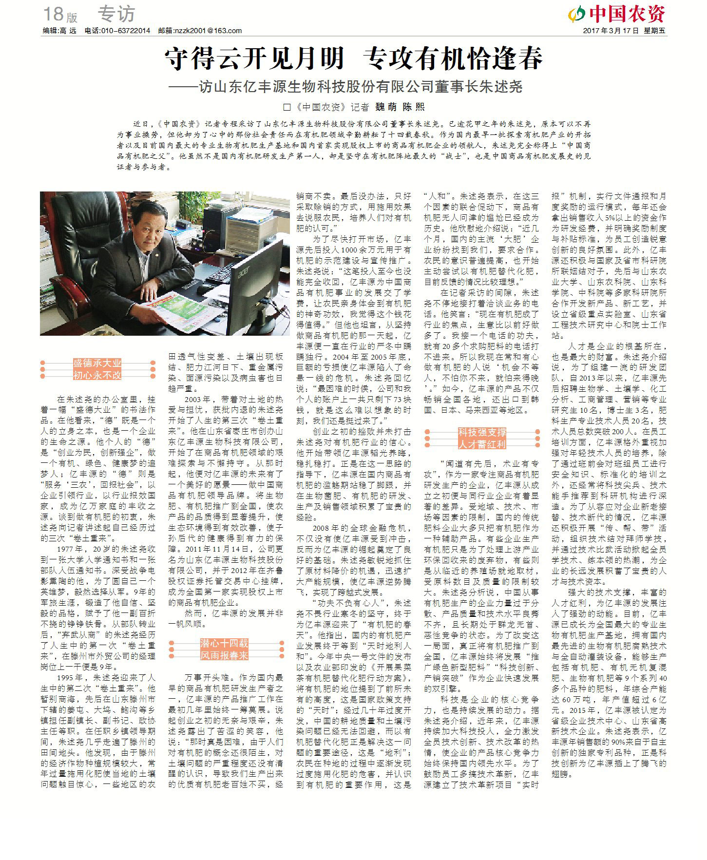 《中國農資》專訪董事長朱述堯
